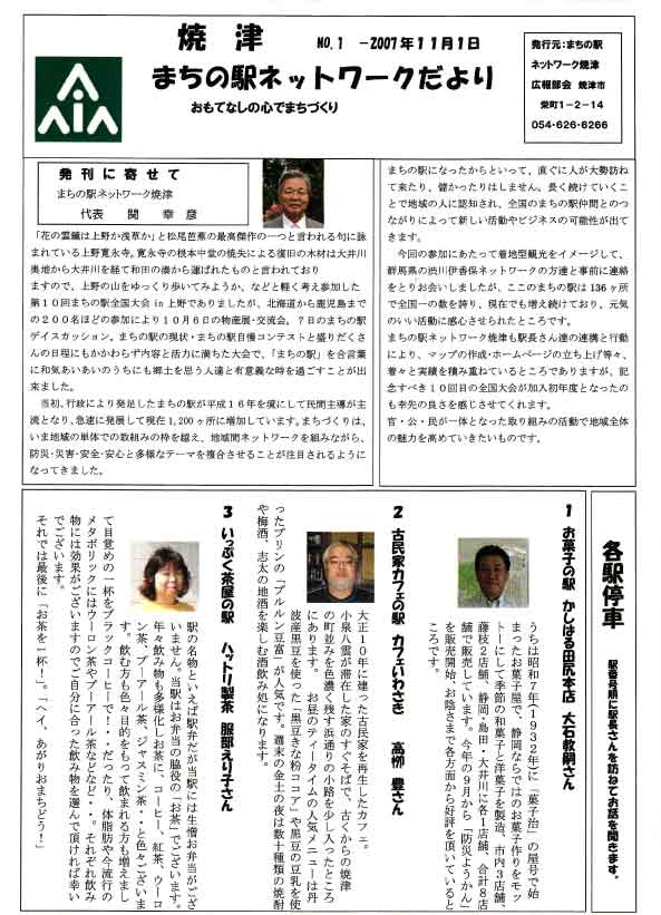 ・関会長挨拶 ・各駅停車 (お菓子の駅・古民家カフェの駅・いっぷく茶屋の駅) ・画像(jpg)版 76KB ・PDF版 1.00MB |